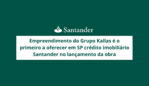 Empreendimento do Grupo Kallas é o primeiro a oferecer em SP crédito imobiliário Santander no lançamento da obra.